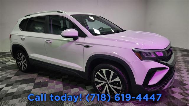 CARFAX One-Owner. 2024 Volkswagen Taos 1.5T SE Auto High-beam Headlights, Automatic temperature control, Exterior Parking Camera Rear, Front dual zone A/C, Fully automatic headlights, Panoramic Sunroof Package, Radio: MIB3 Composition Media AM/FM/HD, Remote keyless entry, Steering wheel mounted audio controls.