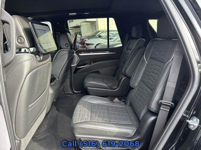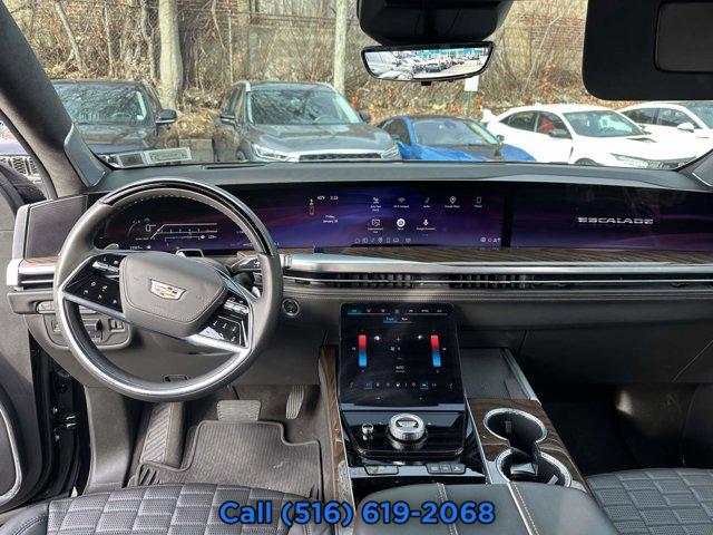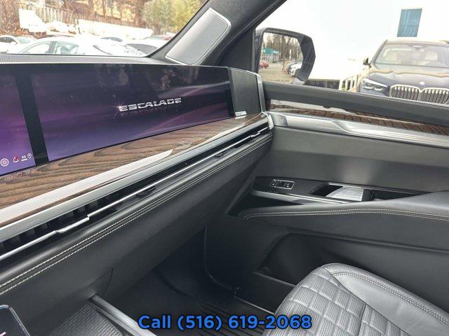 LICENSE PLATE BRACKET FRONT, TIRES 285/40R24 ALL-SEASON BLACKWALL, REAR AXLE 3.23 RATIO, TRANSMISSION 10-SPEED AUTOMATIC electronically controlled with overdrive tow/haul mode and tap up/tap down shifting (STD), 3 YEARS SIRIUSXM, SPORT PLATINUM PREFERRED EQUIPMENT GROUP includes standard equipment, LPO BLACK ROOF RACK CROSS RAILS, SEATS FRONT BUCKET (Includes Semi-Aniline leather 16-way driver and front passenger adjustments with massage.) (STD), SEATS SECOND ROW BUCKET POWER RELEASE (STD), JET BLACK FULL SEMI-ANILINE LEATHER SEATS WITH MONDRIAN QUILTING (With Natural Figured Ash wood trim.), LPO ALL-WEATHER FLOOR MATS 1st 2nd and 3rd row, INFOTAINMENT EXPERIENCE WITH 55 DIAGONAL HD CURVED FRONT DISPLAY (STD), BLACK RAVEN, LPO ONYX PACKAGE includes (RIK) Gloss Black Escalade nameplate LPO (SQO) 22 Forged Multi-Spoke alloy wheels with Satin Graphite finish and Laser Etching LPO or (5FE) 24 Black alloy wheels LPO and (R88) Black illuminated Cadillac emblem LPO (RWD models include (SQO) 22 Forged Multi-Spoke alloy wheels with Satin Graphite finish and Laser Etching LPO. 4WD models include (5FE) 24 Black alloy wheels LPO.), ENGINE 6.2L V8 WITH DYNAMIC FUEL MANAGEMENT Direct Injection and Variable Valve Timing includes aluminum block construction (420 hp [313.2 kW] @ 5600 rpm 460 lb-ft of torque [623.7 Nm] @ 4100 rpm) (STD), CONSOLE REFRIGERATOR freezer mode covered storage large and small storage bins dual cup holders second row electronic climate and heated seat controls. Also includes USB A/C ports, LPO INTEGRATED CARGO LINER, LPO BLACK ILLUMINATED CADILLAC EMBLEM, LPO ALL-WEATHER FLOOR LINER PACKAGE 3rd row, LPO GLOSS BLACK ESCALADE NAMEPLATE located on rear liftgate, WHEELS 24 (61 CM) STEEL INTERIM, LPO INTERIOR PROTECTION PACKAGE includes (CAV) Integrated cargo liner LPO (RIB) All-Weather Floor Liner Package 3rd row LPO and (VAV) All-weather floor mats LPO, LPO 24 (61 CM) BLACK ALLOY WHEELS includes wheel locks, Active Suspension, Keyless Start, Locking/Limited Slip Differential, Four Wheel Drive, Tow Hitch, Back-Up Camera, Air Suspension, Active Suspension, Power Steering, ABS, 4-Wheel Disc Brakes, Aluminum Wheels, Tires - Front Performance, Tires - Rear Performance, Wheel Locks, Conventional Spare Tire, Sun/Moonroof, Generic Sun/Moonroof, Panoramic Roof, Running Boards/Side Steps, Power Retractable Running Boards, Automatic Headlights, Automatic Highbeams, Heated Mirrors, Power Mirror(s), Integrated Turn Signal Mirrors, Power Folding Mirrors, Privacy Glass, Intermittent Wipers, Variable Speed Intermittent Wipers, Rain Sensing Wipers, Remote Trunk Release, Power Liftgate, MP3 Capability, Bluetooth Connection, Auxiliary Audio Input, Satellite Radio, Requires Subscription, Premium Sound System, Bluetooth Connection, Smart Device Integration, Entertainment System, Bluetooth Connection, WiFi Hotspot, Leather Seats, Bucket Seats, Seat-Massage, Bucket Seats, Rear Bucket Seats, Leather Seats, Heated Front Seat(s), Heated Front Seat(s), Cooled Front Seat(s), Heated Rear Seat(s), Power Driver Seat, Power Passenger Seat, Driver Adjustable Lumbar, Passenger Adjustable Lumbar, Power Driver Seat, Driver Adjustable Lumbar, Seat-Massage, Passenger Adjustable Lumbar, Seat-Massage, Adjustable Steering Wheel, Mirror Memory, Seat Memory, 3rd Row Seat, Pass-Through Rear Seat, Climate Control, A/C, Rear A/C, Heated Rear Seat(s), Floor Mats, Adjustable Steering Wheel, Heated Steering Wheel, Cruise Control, Steering Wheel Audio Controls, Leather Steering Wheel, Cruise Control, Steering Wheel Audio Controls, Heated Steering Wheel, Heads-Up Display, Power Windows, Power Door Locks, Keyless Entry, Power Door Locks, Remote Engine Start, Universal Garage Door Opener, Cruise Control, Telematics, Lane Departure Warning, Lane Keeping Assist, Adaptive Cruise Control, Requires Subscription, Cruise Control Steering Assist, Driver Monitoring, Cruise Control, Adaptive Cruise Control, Security System, Security System, Immobilizer, Security System, Climate Control, Multi-Zone A/C, A/C, Rear A/C, A/C, Rear A/C, Rear Defrost, Back-Up Camera, Brake Assist, Brake Assist, Front Collision Mitigation, Front Collision Warning, Front Collision Mitigation, Front Collision Warning, Rear Collision Mitigation, Cross-Traffic Alert, Traction Control, Stability Control, Driver Air Bag, Passenger Air Bag, Front Side Air Bag, Front Head Air Bag, Rear Head Air Bag, Knee Air Bag, Passenger Air Bag Sensor, Telematics, Requires Subscription, Rear Parking Aid, Automatic Parking, Night Vision, Back-Up Camera, Aerial View Display System, Blind Spot Monitor, Evasion Assist, Front Collision Warning, Child Safety Locks, Driver Restriction Features, Tire Pressure Monitor, Telematics, WiFi Hotspot, Requires Subscription, Navigation System, Telematics, Requires Subscription