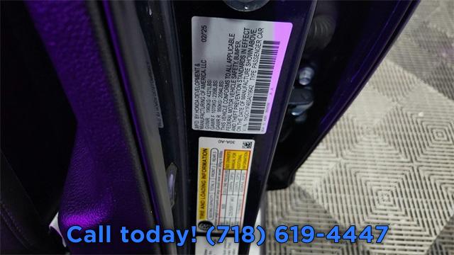 8 Speakers, AM/FM radio, Radio data system, Radio: 180-Watt Audio System, Air Conditioning, Automatic temperature control, Front dual zone A/C, Rear window defroster, Power driver seat, Power steering, Power windows, Remote keyless entry, Steering wheel mounted audio controls, Four wheel independent suspension, Speed-sensing steering, Traction control, 4-Wheel Disc Brakes, ABS brakes, Dual front impact airbags, Dual front side impact airbags, Emergency communication system: HondaLink Assist, Front anti-roll bar, Knee airbag, Low tire pressure warning, Occupant sensing airbag, Overhead airbag, Rear anti-roll bar, Rear side impact airbag, Power moonroof, Blind Spot Information (BSI) System warning, Brake assist, Electronic Stability Control, Lane departure: Lane Keeping Assist System (LKAS) active, Exterior Parking Camera Rear, Auto High-beam Headlights, Delay-off headlights, Fully automatic headlights, Panic alarm, Security system, Adaptive Cruise Control: Adaptive Cruise Control (ACC) with Low-Speed Follow, Speed control, Bumpers: body-color, Heated door mirrors, Power door mirrors, Apple CarPlay/Android Auto, Compass, Driver door bin, Driver vanity mirror, Front reading lights, Illuminated entry, Outside temperature display, Overhead console, Passenger vanity mirror, Rear reading lights, Rear seat center armrest, Tachometer, Telescoping steering wheel, Tilt steering wheel, Trip computer, Fabric Seat Trim, Front Bucket Seats, Front Center Armrest, Heated Front Bucket Seats, Heated front seats, Split folding rear seat, Passenger door bin, Alloy wheels, Wheels: 17" x 7.5J Berlina Black, Speed-Sensitive Wipers, Variably intermittent wipers