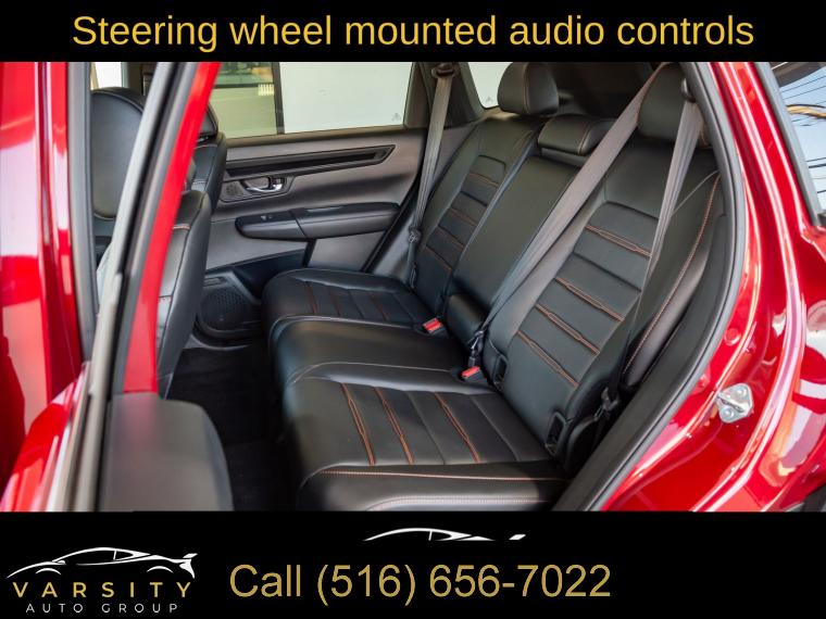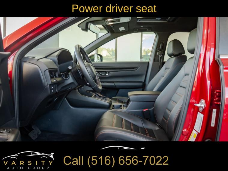 8 Speakers, AM/FM radio: SiriusXM, Radio data system, Radio: 320-Watt AM/FM/HD/SiriusXM Audio System, Air Conditioning, Automatic temperature control, Front dual zone A/C, Rear window defroster, Memory seat, Power driver seat, Power steering, Power windows, Remote keyless entry, Steering wheel mounted audio controls, Four wheel independent suspension, Speed-sensing steering, Traction control, 4-Wheel Disc Brakes, ABS brakes, Dual front impact airbags, Dual front side impact airbags, Front anti-roll bar, Knee airbag, Low tire pressure warning, Occupant sensing airbag, Overhead airbag, Rear anti-roll bar, Rear side impact airbag, Power moonroof, Power Liftgate, Blind Spot Information (BSI) System warning, Brake assist, Electronic Stability Control, Exterior Parking Camera Rear, Auto High-beam Headlights, Delay-off headlights, Fully automatic headlights, Panic alarm, Security system, Adaptive Cruise Control: Adaptive Cruise Control (ACC) with Low-Speed Follow, Speed control, Bumpers: body-color, Heated door mirrors, Power door mirrors, Spoiler, Turn signal indicator mirrors, Auto-dimming Rear-View mirror, Compass, Driver door bin, Driver vanity mirror, Front reading lights, Illuminated entry, Leather Shift Knob, Leather steering wheel, Outside temperature display, Overhead console, Passenger vanity mirror, Rear reading lights, Rear seat center armrest, Telescoping steering wheel, Tilt steering wheel, Trip computer, Front Bucket Seats, Front Center Armrest, Heated Front Bucket Seats, Heated front seats, Leather Seat Trim, Power passenger seat, Split folding rear seat, Passenger door bin, Alloy wheels, Wheels: 18" Berlina Black Alloy, Rear window wiper, Speed-Sensitive Wipers, Variably intermittent wipers, 2025 Honda CR-V Hybrid Sport-L, Radiant Red Metallic, Black w/Leather Seat Trim, Wireless Apple Carplay, Android Auto, All Wheel Drive, Hybrid, Clean CARFAX