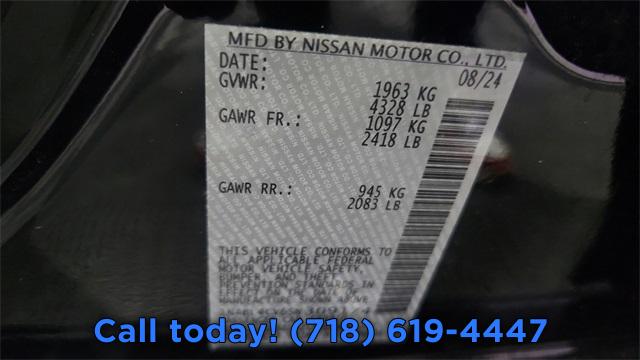 6 Speakers, AM/FM radio: SiriusXM, Radio data system, Radio: AM/FM Audio System, Air Conditioning, Rear window defroster, Power driver seat, Power steering, Power windows, Remote keyless entry, Steering wheel mounted audio controls, Four wheel independent suspension, Speed-sensing steering, Traction control, 4-Wheel Disc Brakes, ABS brakes, Dual front impact airbags, Dual front side impact airbags, Front anti-roll bar, Knee airbag, Low tire pressure warning, Occupant sensing airbag, Overhead airbag, Rear anti-roll bar, Rear side impact airbag, Blind Spot Warning, Brake assist, Electronic Stability Control, Rear Parking Sensors, Auto High-beam Headlights, Delay-off headlights, Fully automatic headlights, Panic alarm, Security system, Speed control, Bumpers: body-color, Power door mirrors, Driver door bin, Driver vanity mirror, Front reading lights, Illuminated entry, Leather Shift Knob, NissanConnect featuring Apple CarPlay and Android Auto, Outside temperature display, Overhead console, Passenger vanity mirror, Rear reading lights, Rear seat center armrest, Tachometer, Telescoping steering wheel, Tilt steering wheel, Trip computer, Front Bucket Seats, Front Center Armrest, Split folding rear seat, Sport Seat Trim, Unique Sport Seats, Passenger door bin, Alloy wheels, Wheels: 19" Sport Machined Alloy, Speed-Sensitive Wipers, Variably intermittent wipers