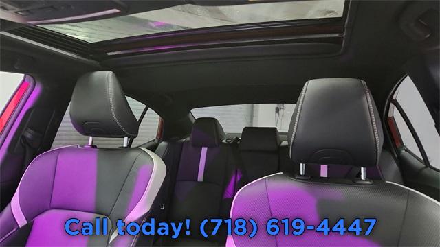 6 Speakers, AM/FM radio: SiriusXM, Radio data system, Radio: Toyota Audio Multimedia w/12.3" Touchscreen, Radio: Toyota Audio Multimedia w/8" Touchscreen, Air Conditioning, Automatic temperature control, Front dual zone A/C, Rear window defroster, Power driver seat, Power steering, Power windows, Remote keyless entry, Steering wheel mounted audio controls, Four wheel independent suspension, Speed-sensing steering, Traction control, 4-Wheel Disc Brakes, ABS brakes, Dual front impact airbags, Dual front side impact airbags, Emergency communication system: Safety Connect (up to 10-year trial subscription), Front anti-roll bar, Knee airbag, Low tire pressure warning, Occupant sensing airbag, Overhead airbag, Rear anti-roll bar, Rear side impact airbag, Brake assist, Electronic Stability Control, Exterior Parking Camera Rear, Auto High-beam Headlights, Delay-off headlights, Fully automatic headlights, Panic alarm, Security system, Speed control, Bumpers: body-color, Heated door mirrors, Power door mirrors, Spoiler, Turn signal indicator mirrors, Apple CarPlay/Android Auto, Driver door bin, Driver vanity mirror, Front reading lights, Illuminated entry, Leather Shift Knob, Leather steering wheel, Outside temperature display, Overhead console, Passenger vanity mirror, Rear reading lights, Rear seat center armrest, Telescoping steering wheel, Tilt steering wheel, Trip computer, Front Bucket Seats, Front Center Armrest, SofTex & Fabric Seat Trim, Split folding rear seat, Passenger door bin, Alloy wheels, Wheels: 18" Black-Finished Alloy, Variably intermittent wipers