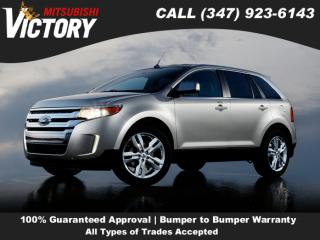 Comments Welcome to Victory Mitsubishi! We offer a combined inventory of 700 cars new and luxury used vehicles. All Used vehicles come with a quality assurance inspection, our New Vehicles have an unprecedented 10-year 100k mile warranty we also have vehicles car for any want or purpose. Come into test drive this car for any want or purpose. Come in to test drive this Ford Edge Limited today! *. 2011 Ford Edge Limited Tuxedo Black Metallic 4D Sport Utility Reviews: * Softer than some, stiffer than others, the 2011 Ford Edge hits the mass-appeal sweet spot in ride and handling. Coupled with a refined, eager powertrain and notably quiet highway cruising, the roomy, comfortable, versatile Edge is an extraordinarily well-rounded way to move throughout the world. Music lovers and Bluetooth junkies will love the hands-free convenience provided by Ford’s innovative SYNC and Touch multi-media interfaces. Source: KBB.com * Quiet, roomy cabin; comfortable ride; innovative technology features; lots of safety equipment. Source: Edmunds Save yourself Time and Money - Fill out a credit application online at victorymitsubishi.com and get pre-APPROVED! Financing available for all types of credit with low monthly payment that will fit you budget. Down Payment low as $599. Same day delivery. View our entire inventory by visiting our virtual showroom at victorymitsubishi.com - Only 2 blocks away from Exit 13 off I-95 or Minutes from exit 7 on the Hutchinson Parkway. While we make every effort to ensure the data listed here is correct, there may be instances where the pricing, options or vehicle features may be listed incorrectly. Dealer cannot be held liable for data that is listed incorrectly. to see more pictures of this vehicle or call us at (347) 923-6143 today to schedule your test drive. please refer to dealer’s website for exact pricing and for any incentives that we may apply! Our address is 4070 Boston Road, Bronx, NY 10475. * Options Rapid Spec 300A, 3.16 Axle Ratio, 18" Chrome-Clad Wheels, Leather-Trimmed Heated Bucket Seats, Front License Plate Bracket, Radio: Sony AM/FM Stereo w/HD Radio/MyFord Touch, AM/FM Stereo w/Single CD/MP3/Navigation, SIRIUS Satellite Radio, Integrated SIRIUS Travel Link, 12 Speakers, Exterior Parking Camera Rear, AM/FM radio: SIRIUS, Premium audio system: Sony, Front Center Armrest w/Storage, Compass, Speed-Sensitive Wipers, Auto-dimming Rear-View mirror, Front beverage holders, Variably intermittent wipers, Trip computer, Traction control, Tilt steering wheel, Telescoping steering wheel, Steering wheel mounted audio controls, Split folding rear seat, Speed control, Remote keyless entry, Rear window wiper, Rear window defroster, Rear seat center armrest, Rear reading lights, Rear anti-roll bar, Radio data system, Power windows, Power steering, Power passenger seat, Power driver seat, Power door mirrors, Passenger vanity mirror, Passenger door bin, Panic alarm, Overhead console, Overhead airbag, Outside temperature display, Occupant sensing airbag, Memory seat, Low tire pressure warning, Illuminated entry, Heated front seats, Heated door mirrors, Garage door transmitter: HomeLink, Fully automatic headlights, Front reading lights, Front dual zone A/C, Front anti-roll bar, Four wheel independent suspension, Dual front side impact airbags, Dual front impact airbags, Driver vanity mirror, Driver door bin, Delay-off headlights, CD player, Bumpers: body-color, Brake assist, Automatic temperature control, Alloy wheels, ABS brakes, Tachometer, Spoiler, Rear Parking Sensors, Front Bucket Seats, Electronic Stability Control, Air Conditioning, 4-Wheel Disc Brakes