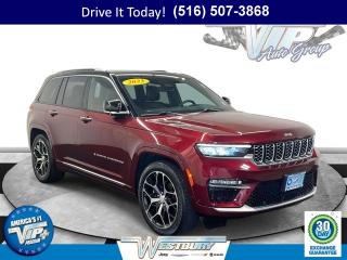 Comments One owner. Velvet Red Pearlcoat exterior and Global Black interior, Summit Reserve trim. Heated Seats, Sunroof, Navigation, Power Liftgate, Panoramic Roof, Alloy Wheels, 4x4, ENGINE: 3.6L V6 24V VVT UPG I W/ESS, TRANSMISSION: 8-SPEED AUTOMATIC 8HP50. QUICK ORDER PACKAGE 23U SUMMIT RESERV. Trailer Hitch. Approx. Original Base Sticker Price: $66,600*.KEY FEATURES INCLUDENavigation, Sunroof, Panoramic Roof, 4x4, Power LiftgateOPTION PACKAGESQUICK ORDER PACKAGE 23U SUMMIT RESERVE Engine: 3.6L V6 24V VVT UPG I w/ESS, Transmission: 8-Speed Automatic 8HP50, 950 Watt Amplifier, Deluxe Headliner, Palermo Leather Door Trim, Summit Reserve Badge, Ventilated Rear Seats, Summit Reserve, TRANSMISSION: 8-SPEED AUTOMATIC 8HP50, ENGINE: 3.6L V6 24V VVT UPG I W/ESS (STD). Jeep Summit Reserve with Velvet Red Pearlcoat exterior and Global Black interior features a V6 Cylinder Engine with 293 HP at 6400 RPM*.EXPERTS ARE SAYINGGreat Gas Mileage: 26 MPG Hwy.WHO WE AREWe hand select the finest automobiles possible, recondition as required so you do not have to worry about anything shortly down the road. Our Certified vehicles for example all have more than 50% brake life, most have brand new brakes installed front and rear and it does not end there.WESTBURY VIPAmericas #1 VIP Plus Program includes Complimentary Loaner Cars, UnlimitedOil & Filter changes for 1 yr. & then included with every factorymaintenance, Courtesy Shuttle to work, home or any other location, ExpressLube 30 minutes or less w/ no appointment necessary, Complimentary NYSI, 24/7 Rescue & Towing. Options BLACK CLEARCOAT, GVWR: 6 050 LBS (STD), ENGINE: 3.6L V6 24V VVT UPG I W/ESS (STD), QUICK ORDER PACKAGE 23U SUMMIT RESERVE -inc: Engine: 3.6L V6 24V VVT UPG I w/ESS Transmission: 8-Speed Automatic 8HP50 950 Watt Amplifier Deluxe Headliner Palermo Leather Door Trim Summit Reserve Badge Ventilated Rear Seats Summit Reserve, VELVET RED PEARLCOAT, GLOBAL BLACK PALERMO LEATHER SEATS, TRANSMISSION: 8-SPEED AUTOMATIC 8HP50, TWO-TONE PAINT GROUP, FRONT LICENSE PLATE BRACKET
